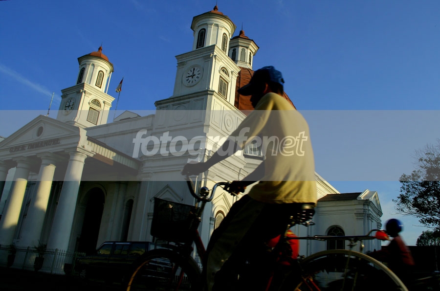 Sebuah kontras yg menarik, orang bersepeda dengan gedung berarsitektur megah...salam