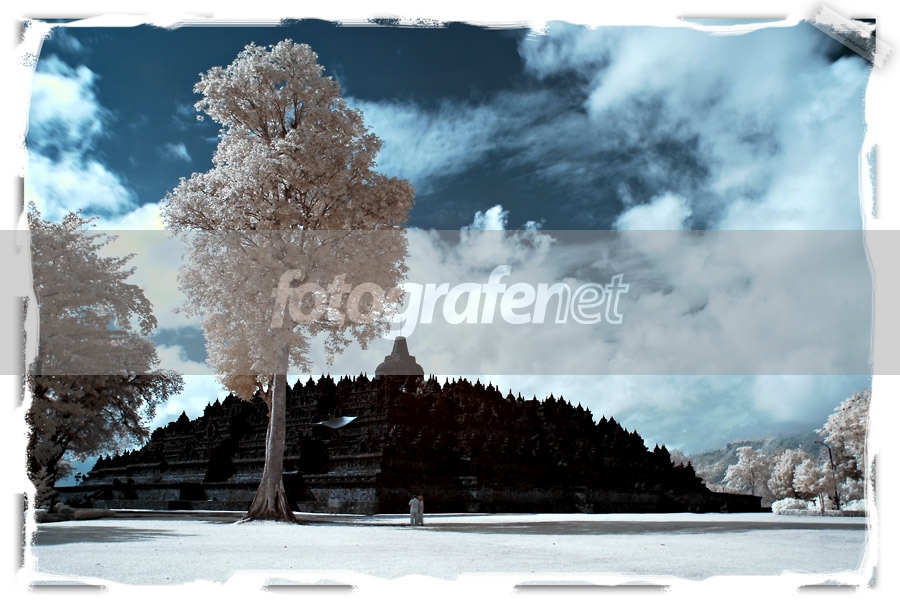 Angle dan komposisi yg digunakan agak tanggung. Pohon itu terkesan malah menganggu. Juga objectnya (candi borobudurnya) agak terlalu gelap. Tone IR-nya bisa lebih maksimal lagi -IMSL