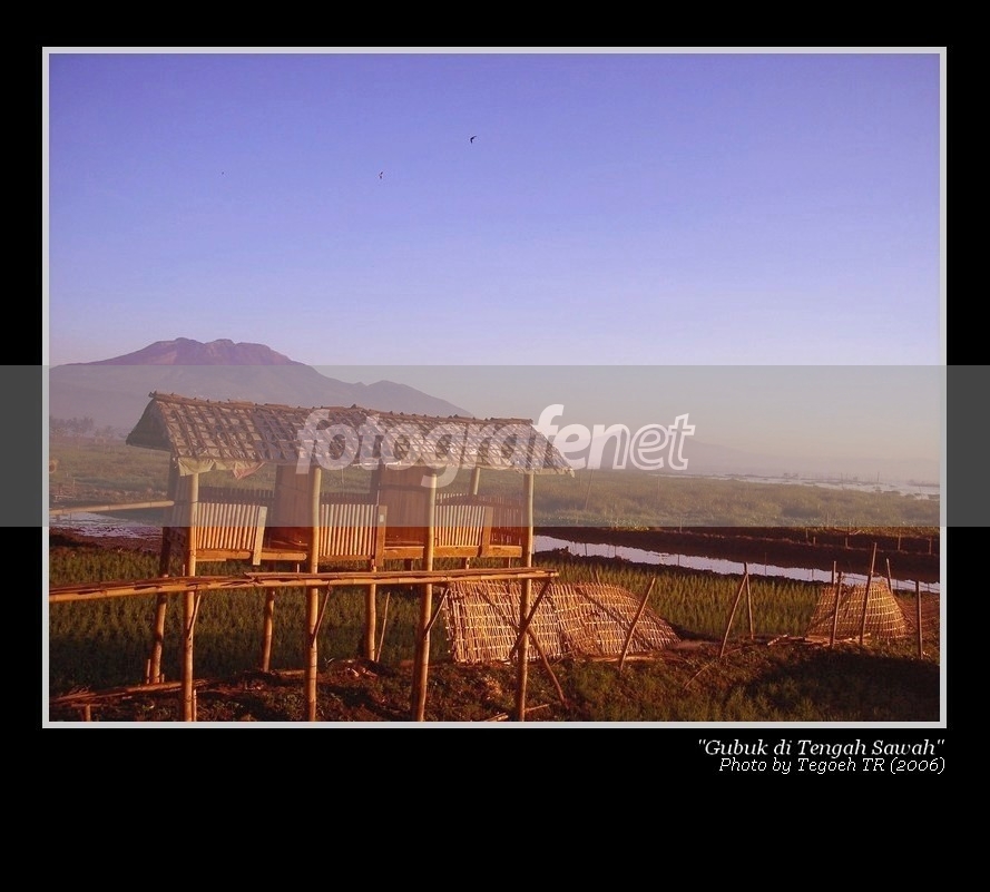 Melalui foto sederhana ini saya mencoba menghadirkan nuansa pagi yang hangat, dengan latar depan gubuk dan sawah, berlatar belakang gunung (entah gunung apa namanya) serta sinar matahari yang masih muda.nnSelamat menikmati...