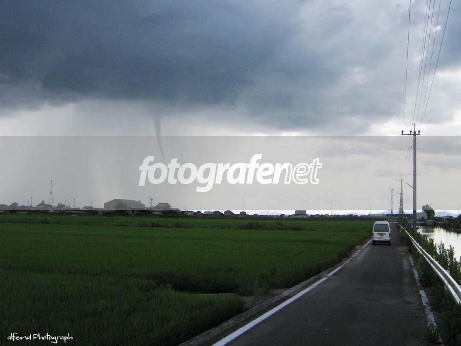 Hii FNers semuanya..n nSudah lama neh ( seminggu lebih ) tidak upload foto. Kali ini saya upload sebuah foto hasil dari perjalanan Yanagawa - Saga. Lokasi foto ini tepatnya di daerah Okawa,waktu itu secara tiba2 banyak mobil berhenti secara mendadak, lalu orang2 didalamnya menunjuk ke atas langit, ada apakah gerangan, saya pun penasaran, lalu saya buka jendela mobil dan melihat, ternyata di sisi timur langit ada angin topann ( hurricane ), saya lalu memberikan aba2 agar mobil dihentikan ke sisi jalan. Lalu sayapun keluar dan berjalan n( kira2 20 meter) kejalan kecil, kesebelah kali kecil, berusaha mendekati Object untuk mendapati posisi penembakan yang baikn( maklumlah camera pocket ), hasilnya cuma 3 kali tembakan, Waktu terbatas..takut tiba2 Hurricane tersebut datang menghampiri lalu menelan saya. Buru2 lari ke mobil lalu tancap gas.nnMohon kritik, saran dan komentar dari teman2 FN lainnya. nnSalam, nnAlfend.nnDate Time Original: 2006:08:13 16:41:35