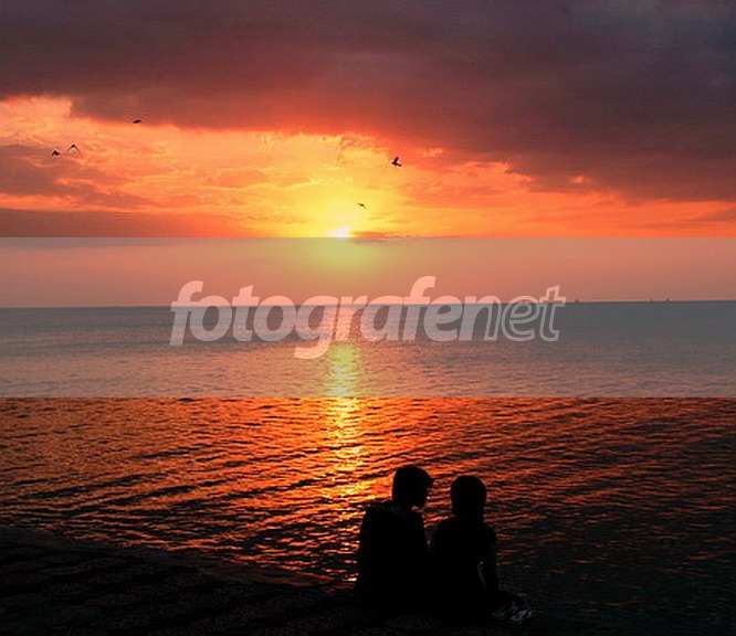 Date Time Original: 2006:08:26 17:22:22nHampir setiap sore di Pantai Marina, Semarang selalu dikunjungi wisatawan anak muda untuk memadu kasih sambil menikmati indahnya sunset. Begitu pula dengan sekawanan burung yang kebetulan sedang melintas sambil mencari mangsa. Tks atas kritik sarannya.
