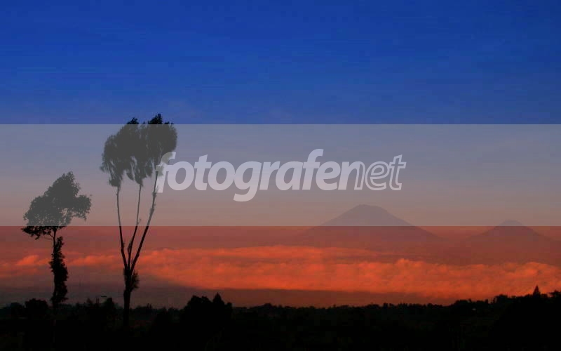2 pohon 2 gunung dalam komposisi & tone yang unik