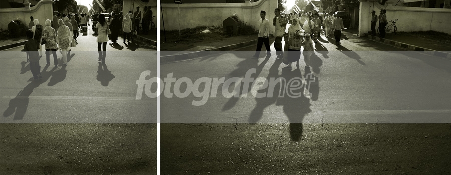 Mas, yg sebelum dan sesudah yg mana? Yg kanan bayangannya lebih panjang berarti sebelum shalat, dan yg kiri lebih pendek, berarti bubaran Shalat? Idenya Ok juga. Tapi koyok fotone sopooooo gitu