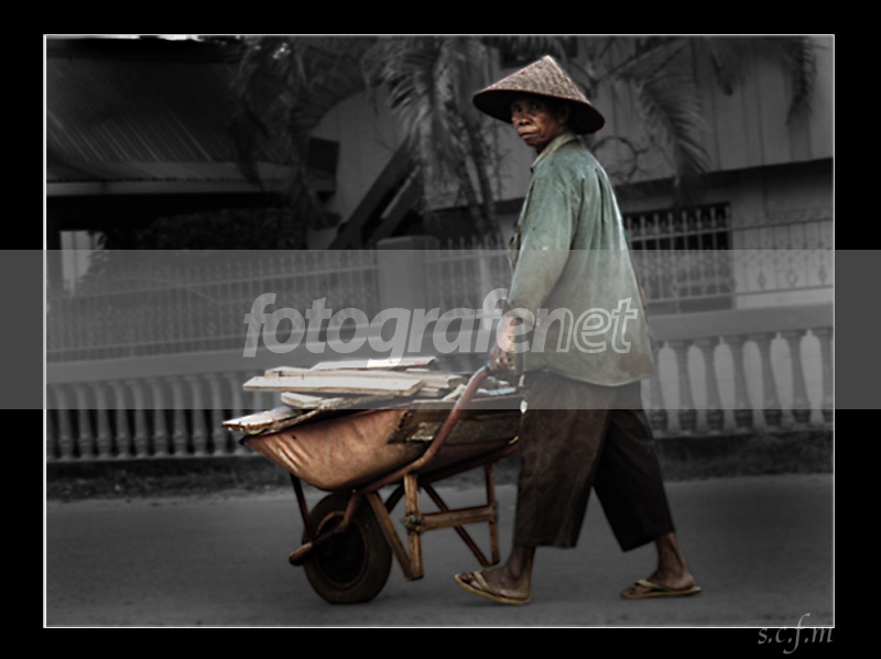 Ibu ini sering lewat depan rumahku. kadang2 gerobaknya terisi penuh sampah plastik yang akan di jual, dan kadang2 juga terisi kayu yang dijadikan kayu bakar...really toughnDate Time Original: 2006:10:01 17:06:36