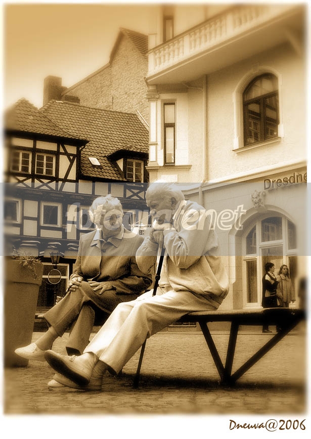 Sepasang Eyang* ini nampak serius membicarakan sesuatu.Si Eyang Kakung yg berpangku dgn tongkat tuanya terlihat spt sdg bpikir keras sambil mendengarkan si Eyang Putri yg terus berceloteh...rnrnrnSebenernya apa yg lagi dibicarakan sepasang Manula ini?rnTentang anak mereka yg hampir tdk pernah dtg mengunjungi mereka kah?rnAtau tentang cucu mereka yg belum pernah mereka lihat kah?rnTentang tunjangan pensiun kah? rnAtau sekedar mendiskusikan liburan berikutnya mau kemana?rnAh gak tau aku..rnrnrnYang jelas tanganku pun jd gatel ingin mengabadikan moment ini.rnrnrn(*)Eyang Kakung/Putri = Kakek/Nenek = Opa/Oma = Grandpa/Grandma