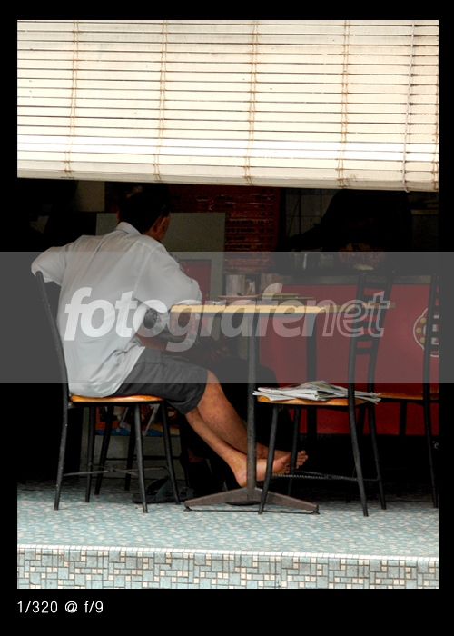 Mantap banget komposisinya. Dan momentnya bagus nih. Pak Cik di kedai kopi, enak sangat!