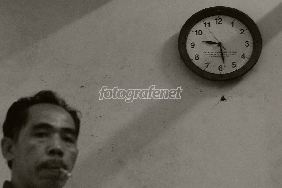 Date Time Original: 2006:11:09 09:29:02rnISO Speed Ratings: 800rnLens: Canon EF 50mm f/1.8 IIrnfokus di jam dinding...(walaupun gak fokus² amat, shake). Belakang udah mentok tembok, terpaksa menerima kenyataan orangnya terlalu mepet/ketat di kiri :((