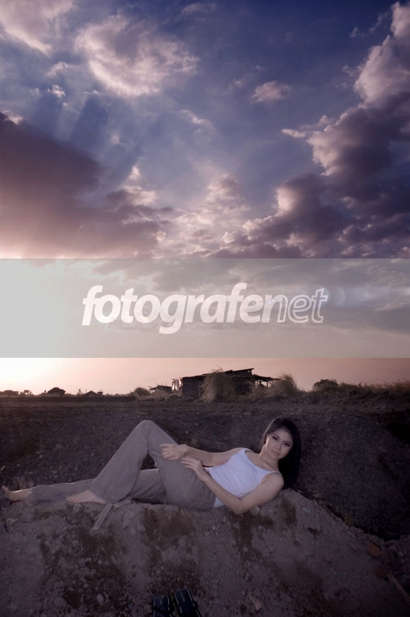 bagus, gw suka bgt langitnya. cuman menurut gw modelnya kok malah "menggangu" ya. tumpukan tanahnya juga keliatan dibuat banget. lebih bagus bagian model dicrop aja kali ya...(modelnya jgn marah ya..he2)