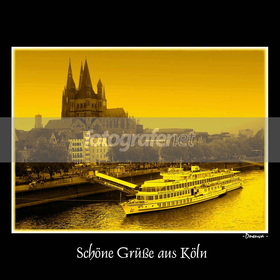 Köln (deutch) = Koeln = Cologne (english), salah satu kota wisata di negara ini, terkenal dengan sungai Rhein dan Cologne Cathedral (Kölner Dom)-nya yang super guede dan berkonstruksi Gothic, juga merupakan salahsatu bangunan gothic tertinggi di dunia - Pada photo ini sbagai BG. rnrnCologne Cathedral dan Sungai Rhein adalah simbol kota Cologne.rnrnTambahan, arti judul adalah Salam manis dari Koeln.rnrnrnSemoga berkenan. jangan segan² utk melemparkan kritikannya..salam, -ipey.
