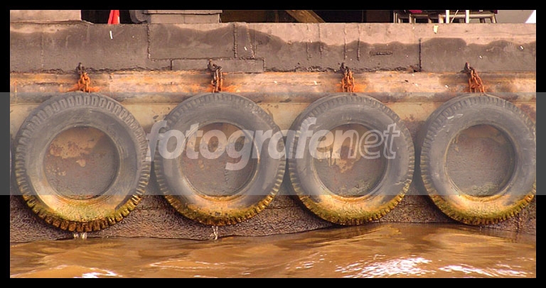 ban-ban di dermaga ini meredam kejutan benturan dengan kapal yang merapat