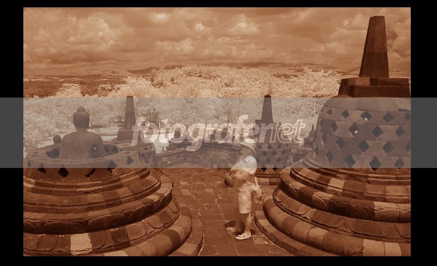 very nice IR picture...great captured on borobudur's stupa and nice scenery background as well...salam