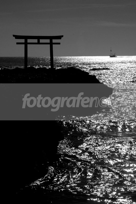 siluet torii in BW nya cakep...itu bonus perahu layar kecil di BG cakep loh...thks atas sharing legendanya...cheers.