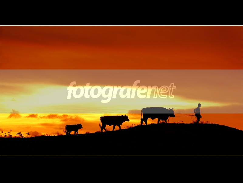 cckk..ccckk.. great moment captured! senja yg indah keemasan.. ada orgnya, sapi besar, sapi kecil..anjing.. gundukan bukit..siluet yg indah.. contrast pas..judulnya..top! salam..