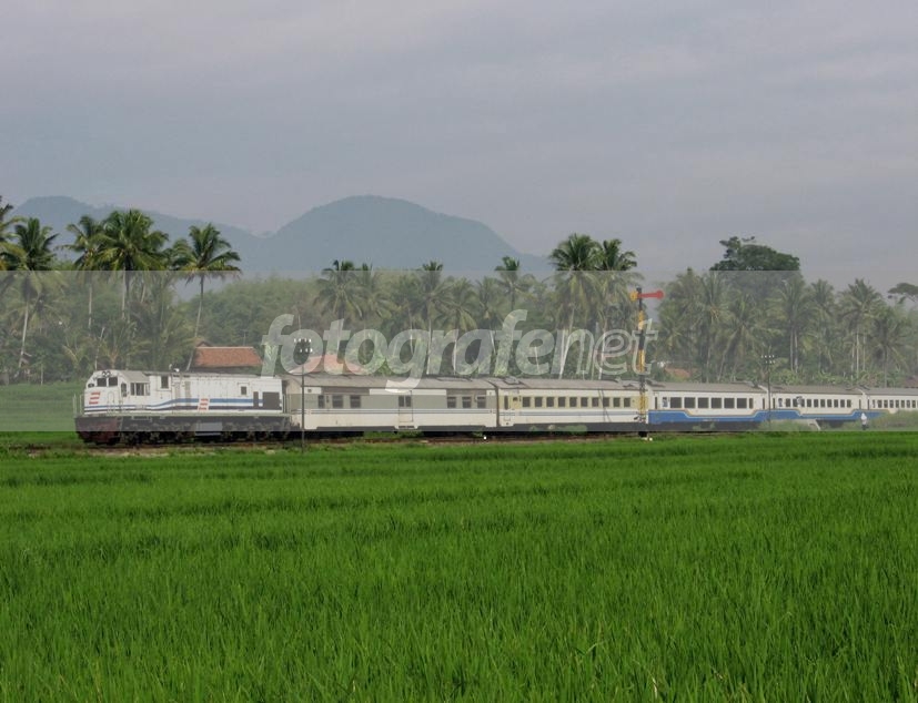 Hasil hunting dan treking bareng railfans dan majalah KA di Leles. KA Lodaya menembus persawahan.