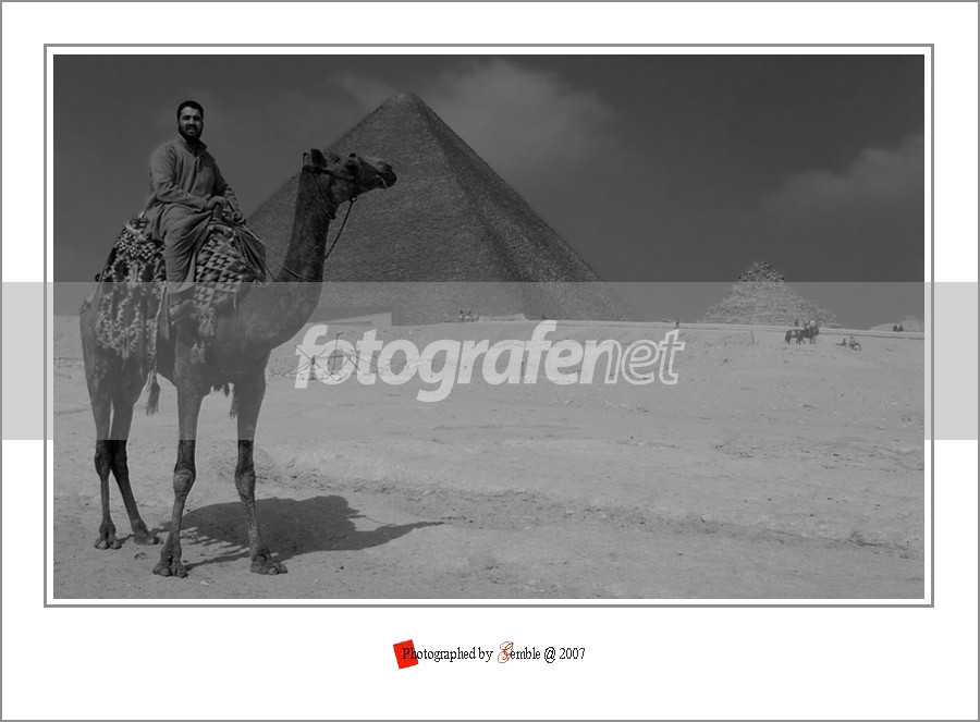 Sebagai sebuah objek foto, piramid di Mesir sejatinya bukan objek yang memiliki karakter artistik yang kuat, dikarenakan rupa dan bentuknya yang sangat simetris dan sederhana. Begitupun dalam foto ini. Piramid yang ingin ditonjolkan sebagaimana ditulis dalam judulnya, tampil dengan sangat biasa saja. Dengan kontras yang kurang dan komposisi yang mati tengah, si piramid terlihat nyaris tenggelam. Justru foto binatang onta dan pengendaranya yang rasanya tampil lumayan unik, terutama karena tidak mudah ditemukan di Indonesia (tempat di mana sebagian besar anggota FN pemberi komentar tinggal).