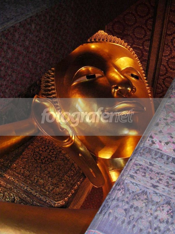 Date Time Original: 2007:03:08 10:10:14nISO Speed Ratings: 245.nSisi lain dari patung Reclining Budha yang sangat terkenal, gold plated, panjang patung ini 150 feet n tinggi 40 feet. Terletak di Wat Po (The Temple of the Reclining Buddha).