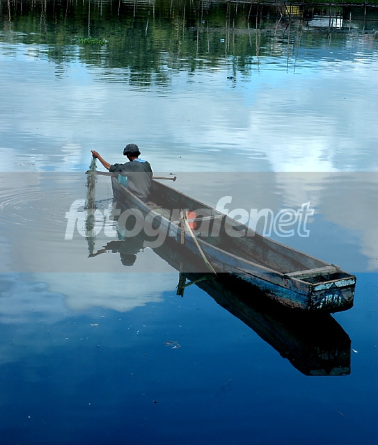 Seri berikutnya hasil jeprat-jepret pas ke Tondano ...nNunggu moment pas pak nelayan menghadap ke kamera gak dapet.. :)nRefleksi birunya awan membuat saya betah mengabadikan keindahan alam di Tondano ..nMohon inputan dan sarannya, thxnnDate Time Original: 2007:03:17 09:50:45