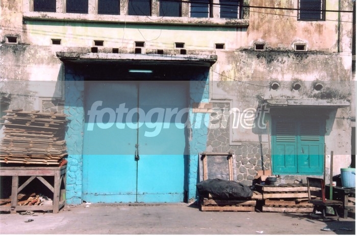 Foto sebuah pintu dan jendela dari sebuah gudang di kawasan pelabuhan rakyat - Kalimas - Surabaya, yang mencoba tampil berbeda dengan warna biru dan hijau.