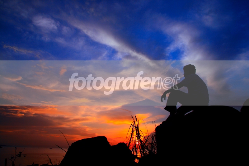 wow indah sekali warnanya. biru ama oranye merah. siluet yang indah. salam damai juga.
