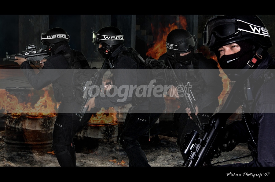 haha, jadi rindu CS nih...btw, seleksi objek nya perlu diperhatiin lagi, di bagian senjata nya ada "garis putih" ...lalu background bisa diperkuat lagi,agar kesan objek di foreground tidak sekedar "tempelan" saja...komposisi juga bisa diperbaiki, cukup 2 objek saja tidak perlu dibuat berbaris. karena kesannya agak nanggung, 1 objek di depan sedangkan di belakang ada 3 sejajar. terus berlatih ya...salam pecinta oldig !!!