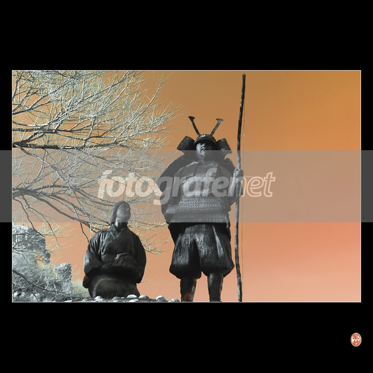 Ketika pergi memotret bunga plum akhir musim dingin lalu di Yugawara, saya membawa juga kamera oprekan. Memotret ini tadinya untuk kenang-kenangan perjalanan pribadi. rnrnAda dua keunikan foto ini, pertama karena alterasi tonal yang ekstrim dan kedua, ada bekas asap pesawat jet yang saya abadikan tepat di busur sang samurai.rnrnFotonya saya mau tunjukkan kepada mantan pacar tentang arti kesetiaan ... fufufufu ... :))rnSaya pasrahkan kepada pakar IR untuk menganalisa foto saya ini ... (^-^)/