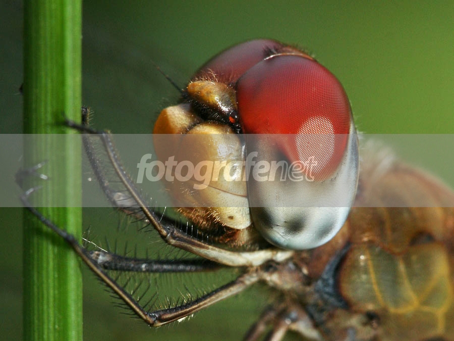 wah besar ya matanya.. makro yang mantap, warna-warnanya asik, garis batang ijo jadi berkesan tegas.. salut