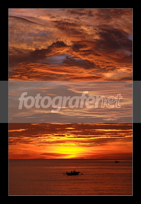 Langitnya membara...kapal kecil jadi aksen yang menarik...