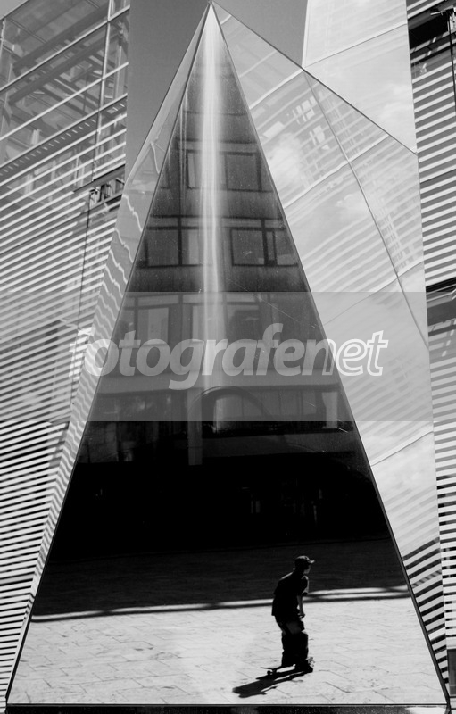 Wuiiihhhh...komposisinya mantab...suka ama bangunan ygantuk segitiga itu dan org maen skateboardnya...keren