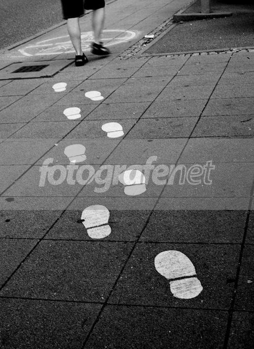 footprints di trotoar, mungkin sebagai rambu kalau trotoarnya menyempit.