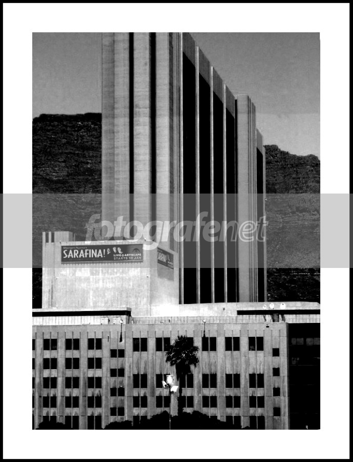 Date Time Original: 2005:01:21 17:23:41nISO Speed Ratings: 100. nnDijepret dari atas bus dalam perjalanan menuju Table Mountain. Sebenarnya selain tertarik sama bentuk vertikal bangunan didepan Table Mountain yang horizontal...asyik saja menurut saya, tapi lebih dari itu adalah karena ada tulisan grup musik Sarafina...yang nyaris sama dengan nama anak saya....hehehe. nnKurang lebihnya mohon masukannya. Trims !!
