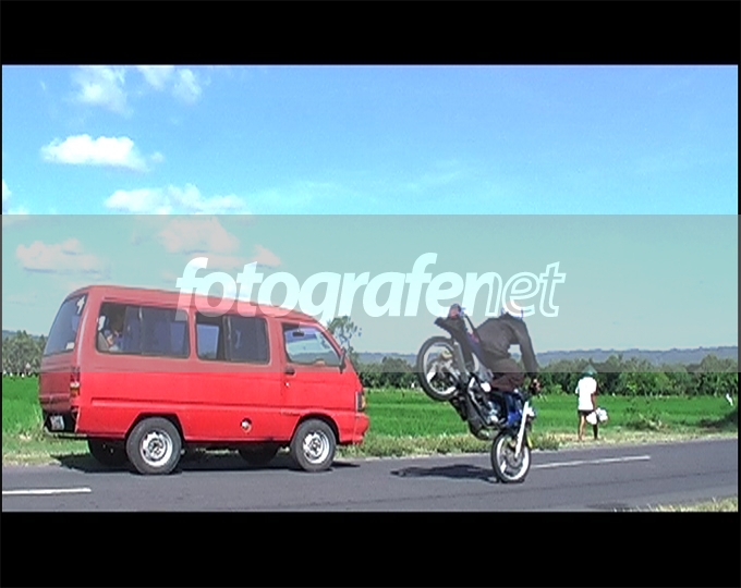 jeli bgt mencet "shutter"nya, jadi momentnya pas sekali. namun, mobil merahnya agak mengganggu yah, terlalu "eye-catching", nyaingin POInya (motor yg lg wheelie).