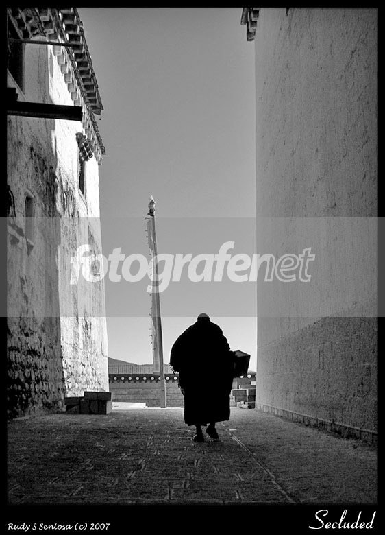 jeli bgt cari lokasi bagus...celah jalan sempit di antara tembok tinggi monastery nya cakep...pendeta yg barusan lewat itu menambah karakter foto BW nya..keren loh bro, cheers.