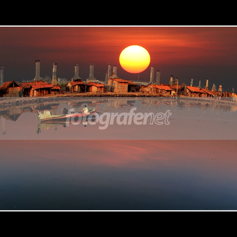 oldig dari 2 foto.....1 foto pemandangan berikut perahu yg melintas dgn langit yg putih polos...2 foto sunset dgn lensa tele biar dapet matahari agak gede...trus di gabungin biar dapet foto dgn view dan sunset yg asik..he he ...............................n........................... ........n.................................n.........salam damai buat semua!....PISS!