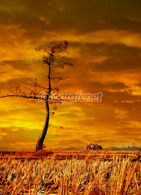 tone warnanya dramatis sekaleee, objectnya juga pas dengan judul. satu lembu dangan 1 pohon :-)