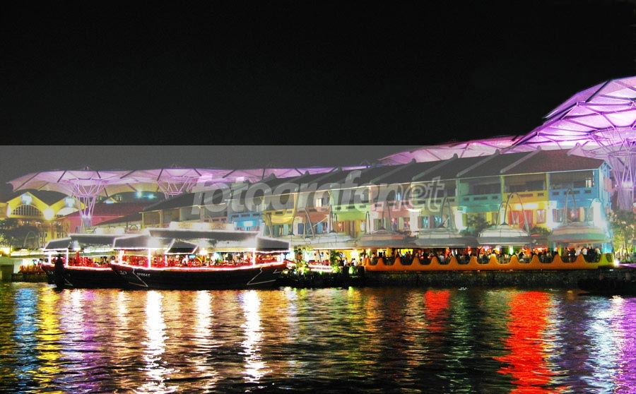 Malam penuh lampu warna warni di clarke quay.