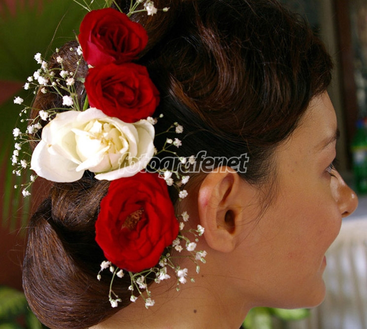 Merah Putih mempercantik rambutku. Detil bunganya indah ternyata ...