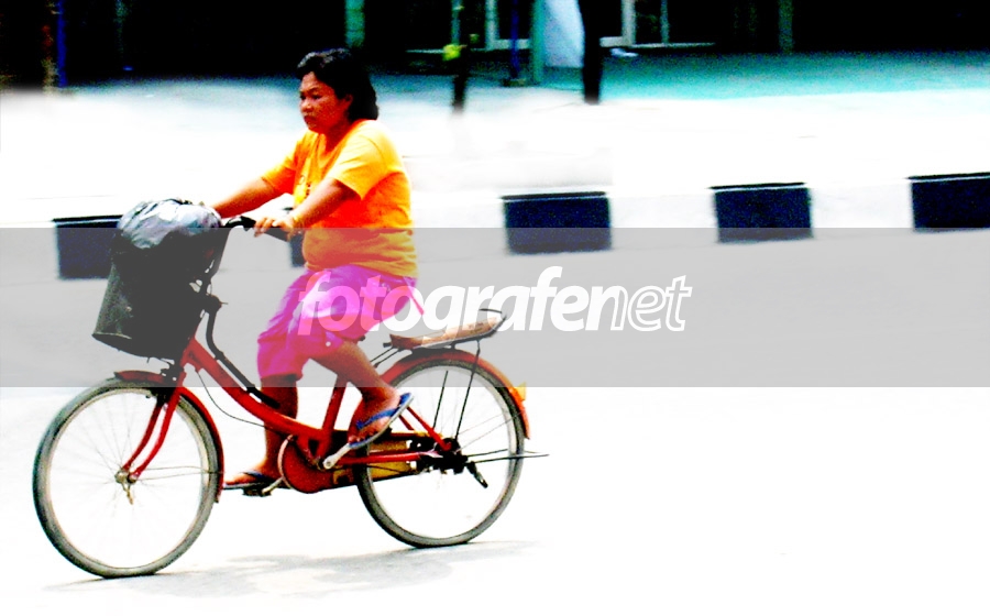 Saya kurang mengerti setting ISO-nya. Kenapa jadi grainy begini ya? Apa karena olah digital? Terlalu OE, sehingga aspal hitam jadi putih ban sepeda pun jadi putih.