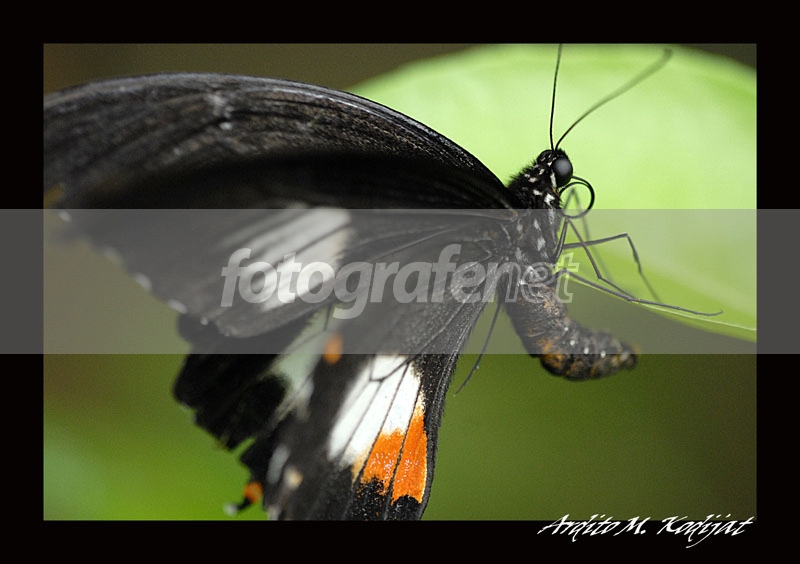 nice macro ......... well focused .......... tajem .......... kesannya croppingnya agak tanggung, kalo boleh saran, kayaknya ada 2 alternatif: [1] cropping-nya lebih longgar, jika memang ruang saat capture-nya lebih luas, sehingga memungkinkan untuk menampilkan seluruh badan kupu2 dengan proporsi ruang canvas yang pas; atau [2] cropping-nya lebih ketat pada bagian kepala, badan, plus sebagian sayap yang terfokus dengan baik, asumsinya adalah ukuran original file-nya cukup besar untuk cropping ketat dimaksud ................. sorry kepanjangan ya ............ salam makromania
