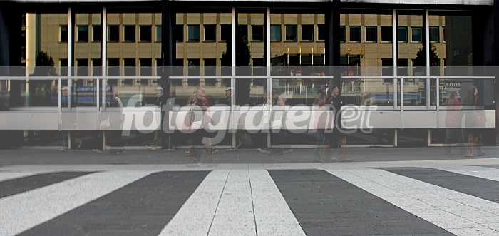 pattern putih di jalan yang ciamik .. perspektif dan refleksi gedung yang cerdas .. lovely ..