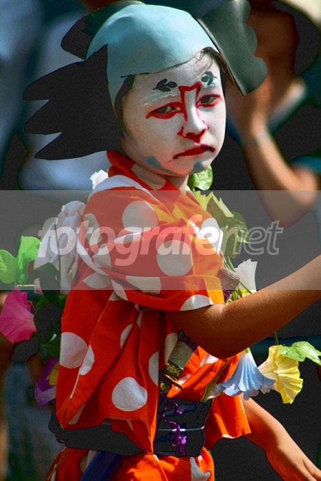 hehe.. pasti dipaksa deh tu anak jadi badut.. mukanya sedih gitu! Sharp & colourful, cakep fotonya! Salam hangat dari Wina!