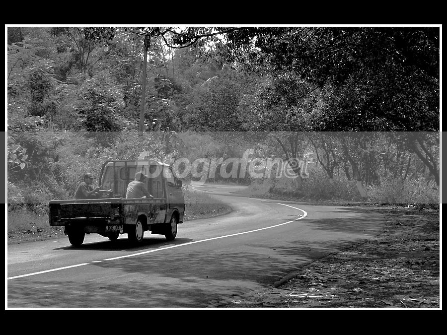 Sendiri melaju di tanjakan yg sepi pagi hari ...rnrnMasih hasil jepretan pakai kamera pinjaman,Canon PS S5IS 1/400 f/8 ISO200 (di alat pribadi adanya Canon PS A620) ... color di b/w kan pakai channel mixer di PS.