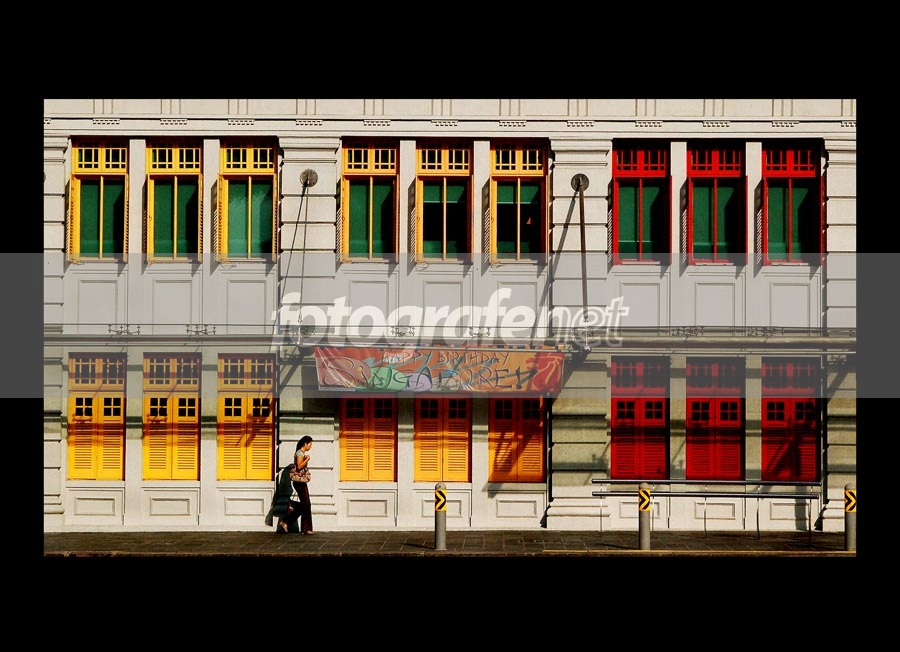 komposisi simetris nya asyk...pas timing nya tuh, ada satu yg lagi lewat d depan...kontras warna warni jendelanya cakep, cheers.