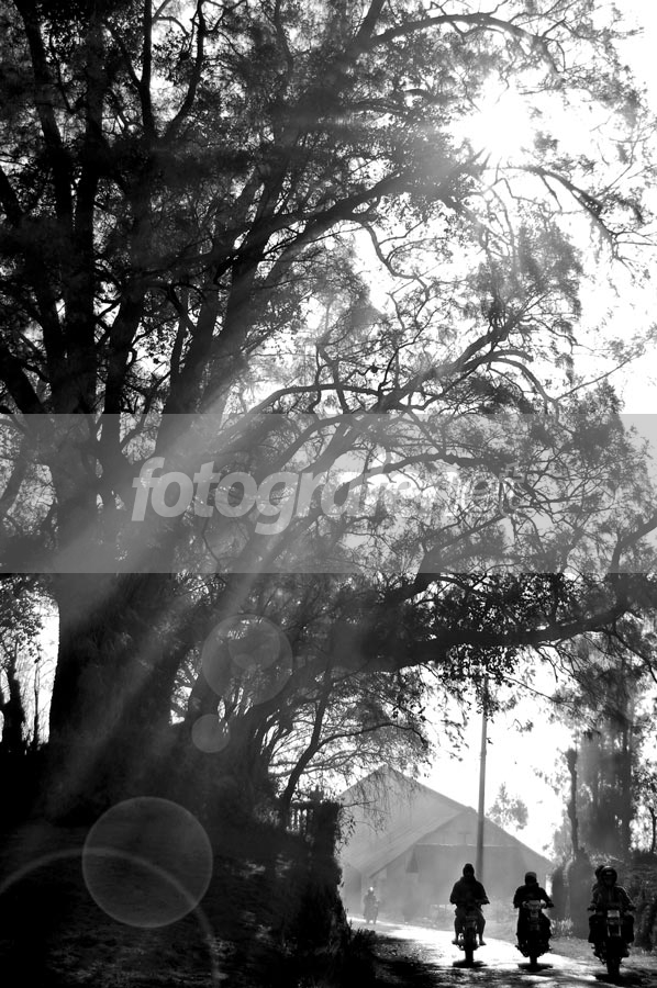 Pagi menyingsing di ufuk timur. Para pengendara ini adalah petani dan penduduk lokal yang berangkat dari ujung bawah lereng Gunung Bromo menuju lembah lembahnya yang subur. nKekayaan sumber daya alam yang terkandung di kaki gunung Bromo menjadi sumber pendapatan utama mereka. nnOleh oleh dari hunting di Bromo. stok lama tapi baru sempet upload. Semoga berkenan.nnSalam dari jember...