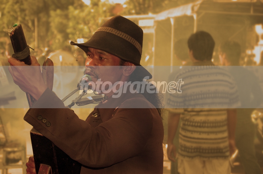 seorang pengamen di pasar pagi ijen - malang, gaya nya yang khas, nyanyian yang unik, penampilannya yang seadanya, di selimuti asap2 penjaja sate yang juga i kelilingi orang yang berlalu-lalang, siapa tahu didalam tasnya juga ada "sesuatu" yang lain selayaknya desperado..... :)nnsaleumnm1q