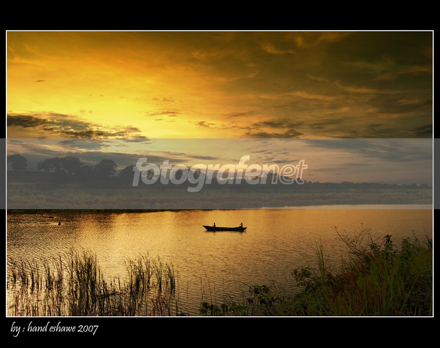 Senja di belakang rumah. Pencari ikan di danau yang bening ini siap-siap pulang, Alhamdulillah hari ini tangkapan lumayan banyak.nSalam dari desa.