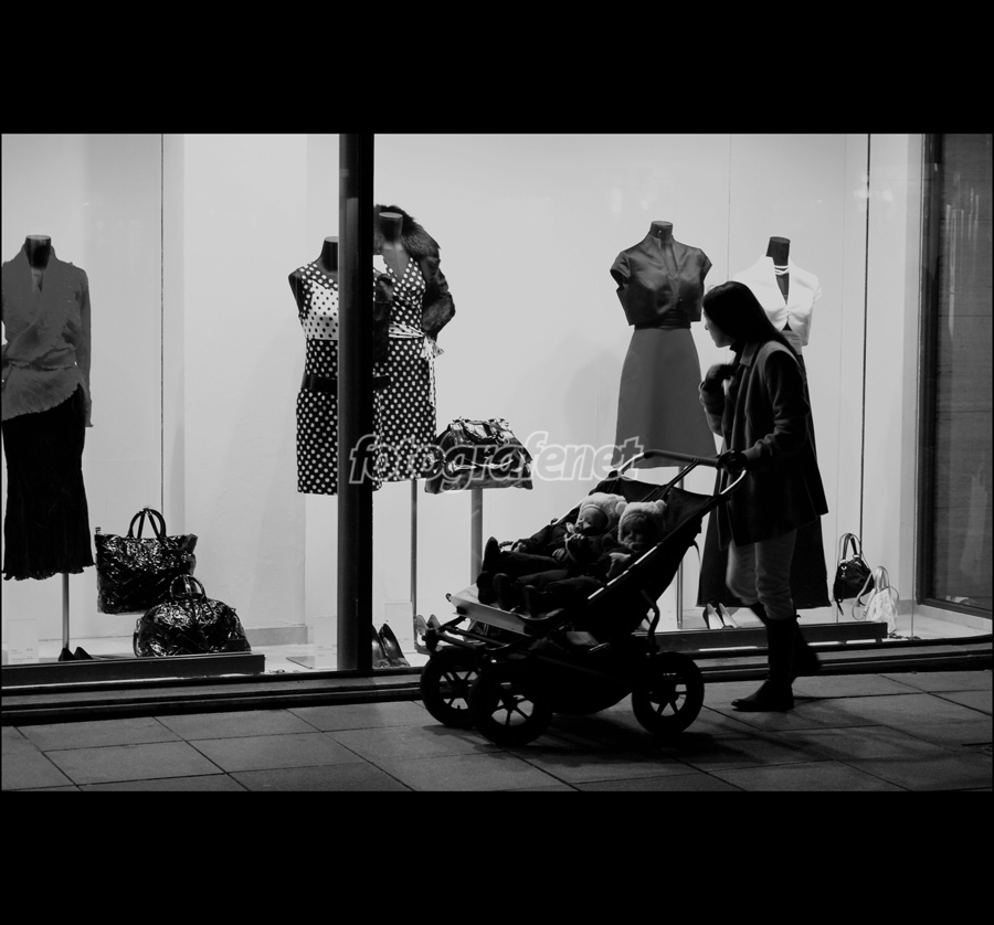 Kompo BW yang menarik, tajam....(pembatas kaca ditengah rada mengganggu? -imho-)....Anyway.....foto ini bisa cerita sendiri (ekspresi serius siibu memperhatikan baju.... OK lho!). Great !!