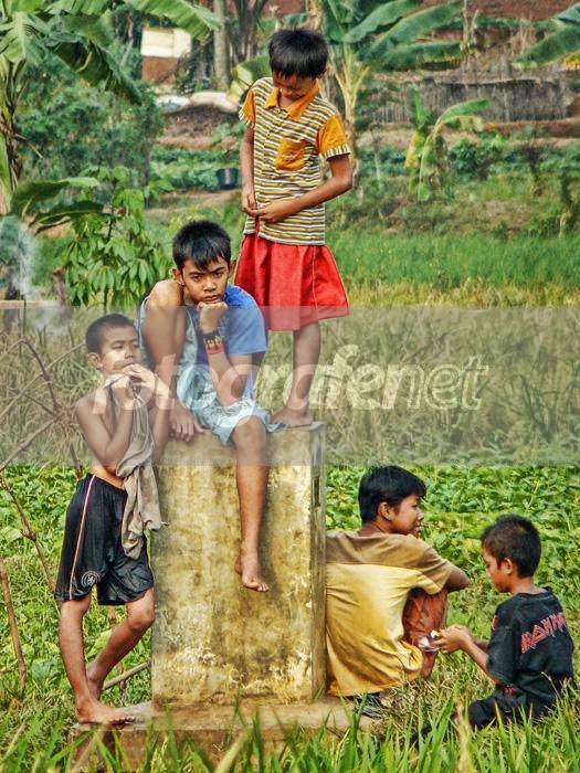 sekumpulan anak2 yg sedang melamun di tengah sawah,dan lelah habis bermain air di kali.... semoga berkenan salam