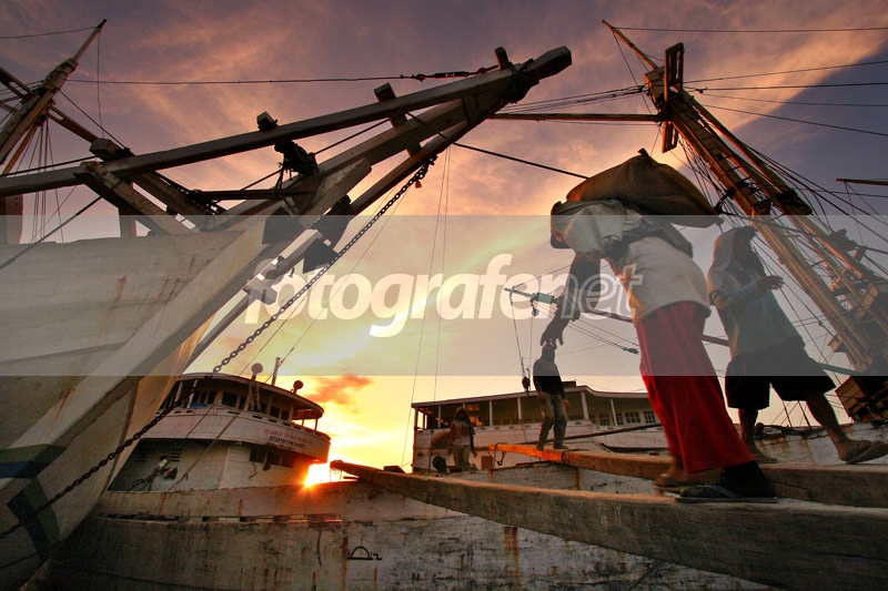 Buruh sedang angkut semen ke kapal