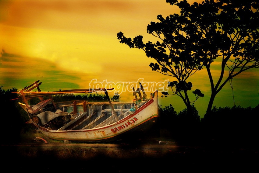 sebenarnya ini foto cukup baik konsepnya, tapi sayang oldig merusak keindahannya. di bagian bawah kapal terlihat sekali sisa brush nya, juga di awan, oversaturated dan overprocessed. imho. keep shooting.