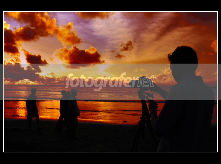 Dahsyat tone langitnya nih. Silhuette yang menarik. IMHO, kalau hanya fotografer di kanan aja, kayaknya makin OK nih tanpa keramaian silhuett yang lain di BG....